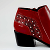 Botín cuero richato rojo punta cuero diseño boa talón aplicaciones boa y tachas. Cierre en el lado interior del zapato.