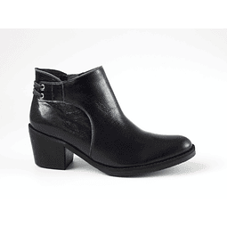 Botín cuero negro talón aplicación cuero diseño pitón y tachas